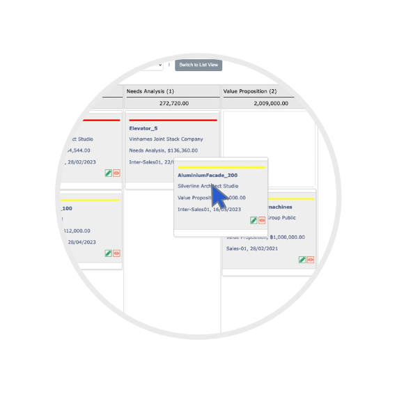 Track sales opportunities and manage your sales pipleline. Easy clicks, drags, and drops through Kanban View.